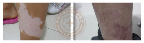 患者谢女士,腿部白斑4年余,通过ReCell治疗3个月后,白斑已基本消失。